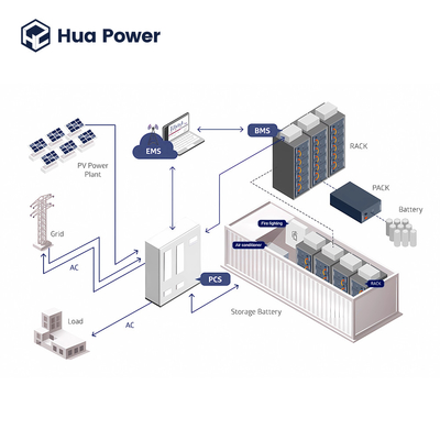 Το Hua Power Σύστημα Αποθήκευσης Ενέργειας σε Εμπορευματοκιβώτιο είναι ένα κλιμακούμενο, αρθρωτό σύστημα αποθήκευσης ενέργειας σχεδιασμένο για να παρέχει αξιόπιστη, αποδοτική ισχύ σε μια ποικιλία εφαρμογών. Το σύστημα κατασκευάζεται στην Κίνα και τροφοδοτείται από μπαταρίες LFP, προσφέροντας 10-ετή εγγύηση και βαθμό προστασίας IP54. Το σύστημα περιλαμβάνει επίσης ένα σύστημα κατάσβεσης πυρκαγιάς για να πληροί τους τοπικούς νόμους και κανονισμούς. Η τάση της μπαταρίας έχει οριστεί στα 1000V-1500V για βέλτιστη απόδοση. Αυτό το σύστημα είναι ιδανικό για οποιαδήποτε εφαρμογή που απαιτεί μια αξιόπιστη, αρθρωτή λύση αποθήκευσης ενέργειας που μπορεί εύκολα να κλιμακωθεί για να καλύψει συγκεκριμένες ανάγκες.